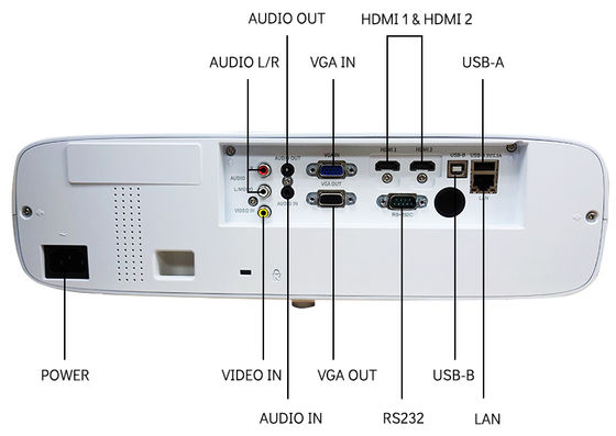 Includes HDMI, USB, VGA, LAN, and audio ports for easy integration with laptops, media players, and AV systems.
